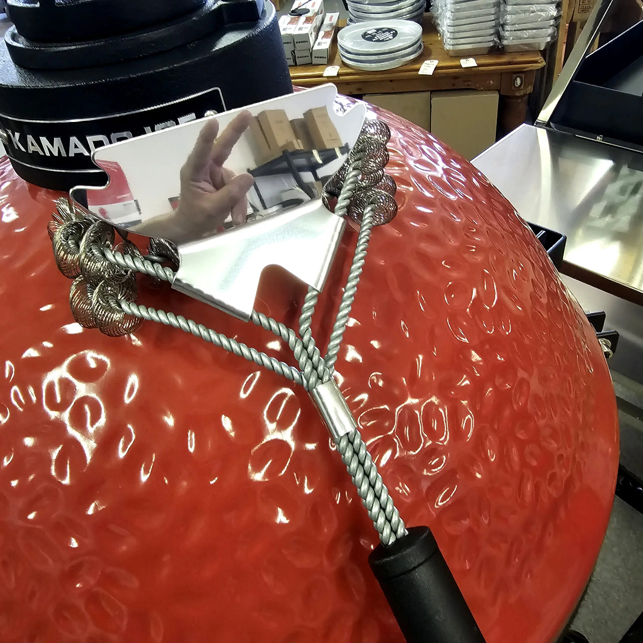 Säker gallerborste består av tre rader med metallfjädrar/spiraler istället för metallstrå. På ryggen finns det en extra fettskrapa för att ta bort rester av Fett, BBQ-sås etc. Fettskrapan har också två urfräsningar som gör att du kan enkelt och exakt kan skrapa av galler upp till 7 mm. grovlek.